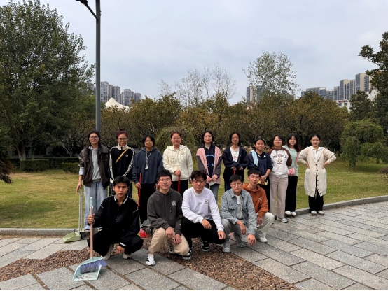 在学院辅导员王俊杰指导下,同学们分组协作,有序投入绿化责任区的环境维护工作中。大家手执扫帚、灰斗等工具,认真清扫草坪落叶、捡拾杂物、归整绿化带,切实提升了校园绿化区域的整洁度与美观性,展现出青春向上的劳动风貌。
